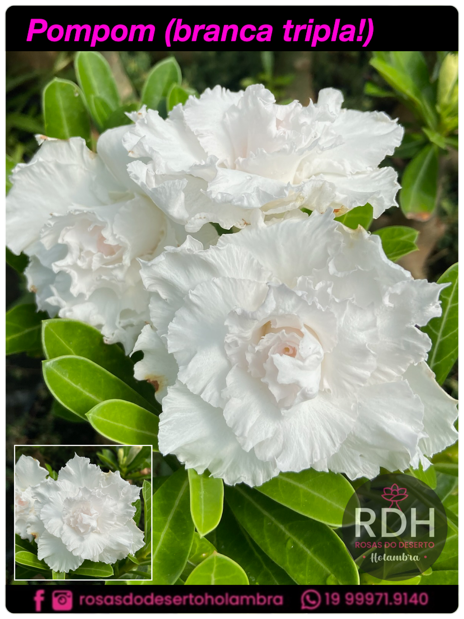 PARABÉNS você está prestes a comprar na RDHOLAMBRA!!! LEIA ATENTAMENTE NOSSAS CONDIÇÕES ABAIXO *ANTES DE REALIZAR O PAGAMENTO*, caso concorde, aguardamos seu pagamento:Envio de segunda e quinta-feira Prezamos pelo envio de plantas com crescimento saudável e selecionamos uma a uma verificando possíveis problemas, porém por se tratar de um ser vivo damos ASSISTENCIA sempre que necessário! E GARANTIA DE 30 DIAS com a devolução do dinheiro pago na planta em caso de DANOS irreversíveis NO TRANSPORTE ou em caso de PODRIDÕES no caudex SOMENTE! Demais problemas identificados, especialmente em plantas saudáveis, não realizamos ou garantimos devoluções do valor. Saiba que pode contar por tempo indeterminado com nossa consultoria e assistência!!! Não garantimos VM (vírus do mosaico). * Para garantia, é indispensável envio de fotos da planta SEM CORTES, e fotos das partes afetadas.* Caso seja notado qualquer problema, nos chame ANTES e SIGA NOSSAS orientações, caso o corte seja realizado antes de nos mostrar foto ou nos contatar, a garantia será perdida. Buscamos principalmente a satisfação e felicidade do cliente, conte conosco!